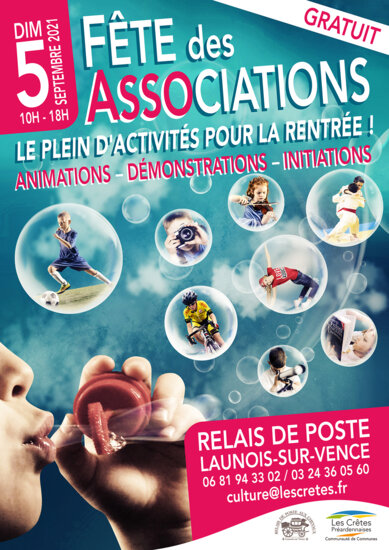 GRATUIT. Lancement de la 1ère édition de la Fête des associations organisée par la Communauté de Communes des Crêtes Préardennaises au Relais de Poste aux Chevaux de Launois-sur-Vence. L'occasion idéale pour découvrir les associations du territoire, de s'initier à certaines pratiques ( sportives, culturelles, de loisirs... ) tout en profitant du programme d'animations prévu au cours de la journée : conférences, exposition, concerts... PROGRAMME : (Détails du programme à venir…). Plus d'infos sur : https://agenda.cretespreardennaises.fr/user-calendar/events/event?id=683